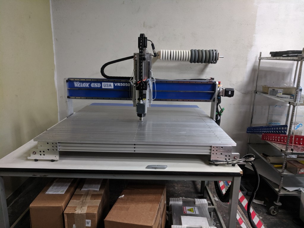 After seasons of relying completely on manual milling or sponsors to finish our parts, I decided to do the research and get our team a CNC router. I eventually decided on the Velox5050 router as it was large enough to machine our game pieces (4′ x 4′) and it could also cut aluminum with ease. Before getting the machine I had never used any CNC’s before, so it was a learning process to make quality parts