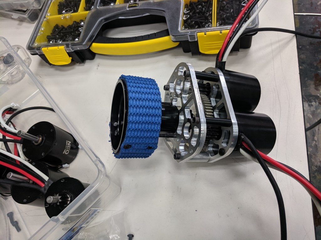 The was an off-season robot that we made for the FRC 2019 game, “Deep Space.” This was the first robot that I got to use our CNC router on to make, and used Onshape for the first time to design. We got to try out a bunch of new methods of building robots with this off-season robot, and were able to finish the Design->Build->Test in only 3 weeks! We also fit everything in a frame size of 24″ x 24″ in order to learn to build things small and light