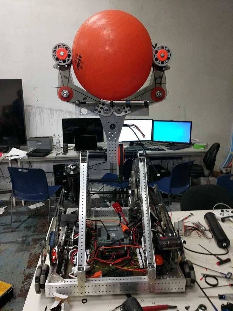 This picture was taken on the end of week 5 of receiving the challenge. It was a relief to finish the robot with so much extra time to spend iterating on mechanismsms